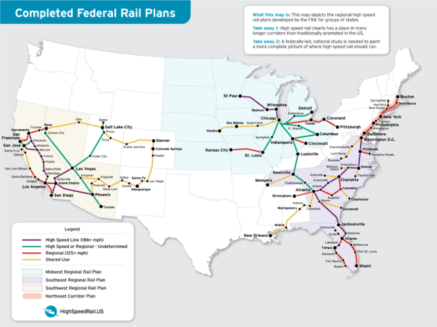 美国高铁规划图。