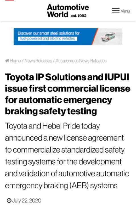 圖:普渡大學-共同開發汽車主動安全評估設備