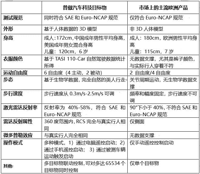 河北普傲汽車科技提供靜止型和運動型兩類3D行人目標物,每類目標物均包括成人和兒童兩種,均符合SAE和Euro Ncap規范要求。與市場上提供的同類歐洲產品相比具有明顯的技術優勢,更符合中國國情和測試場景技術要求。