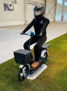 . Has the same visual, automotive radar and LIDAR characteristics of a representative electric bicyclist in all directions