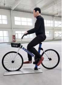 . Has the same visual, automotive radar and LIDAR characteristics of a representative bicyclist in all directions